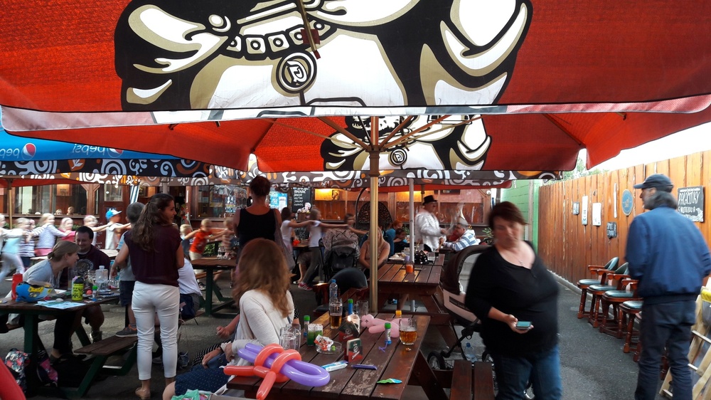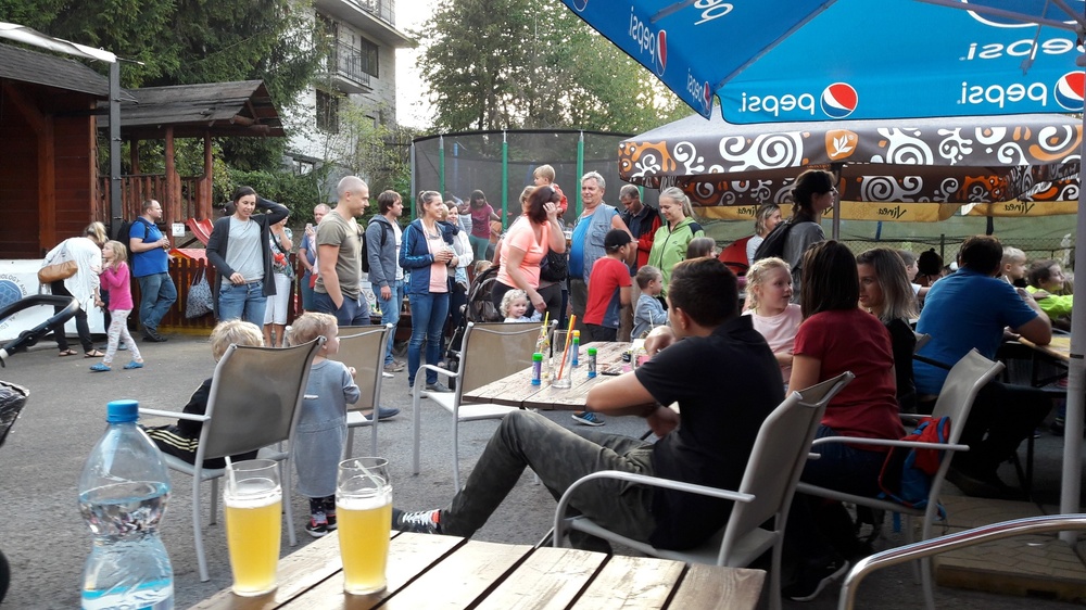 V cíly - v areálu restaurace Kamínka si nejprve všichni za splněné úkoly vyzvedli odměnu ( bublifuk a věcnou hračku) a souběžně zde následovala tvořivá dílna, a vystoupení klauna Roberta.