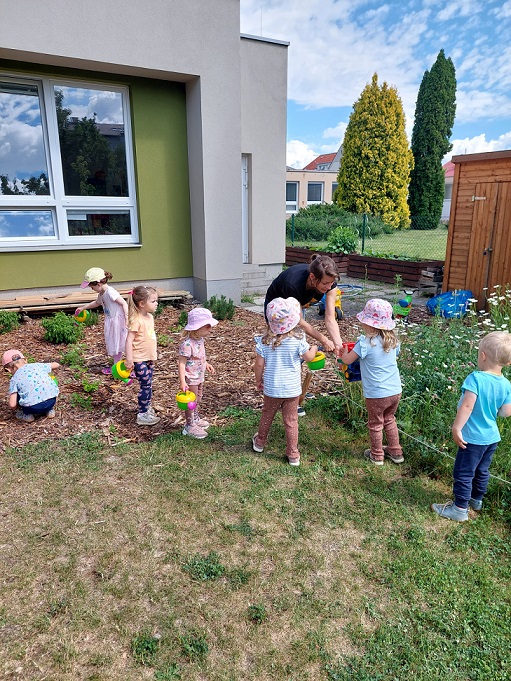 • v březnu 2022 po zimní přestávce jsme ve spolupráci s lektory, zaměstnanci a dětmi začali zahradu dotvářet, tak aby co nejvíce vyhovovala potřebám rostlin, ale i praktickým nárokům návštěvníků
