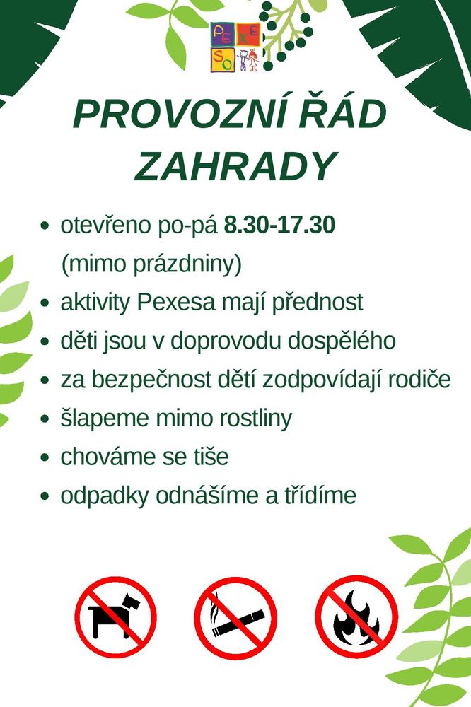 • v květnu 2022 se stále více tradičních kurzů, kroužků a kací přesouvá na zelené plochy zahrady a tím vznikla zvýšená potřeba stanovit pravidla užívání zahrady