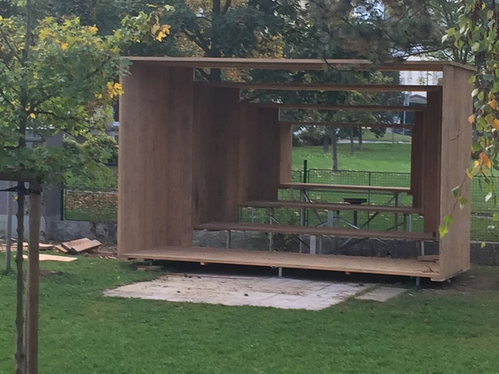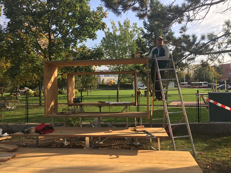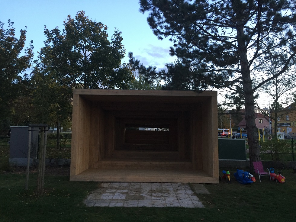 Vzdušný dřevěný objekt, kterému říkáme Zelená učebna, je umístěn na zahradě Pexesa - místního komunitního centra. “Je dobré překračovat naše zaběhlé vnímání prostoru, co takhle altán ve tvaru kamery obscury”: říká Miloslav Fekar, který realizoval na Zbraslavi multifunkční altány v místním lesoparku Belveder. Projekt učebny vznikl dlouhodobě v návaznosti na realizaci rozmanité ekovýchovné zahrady. Cílem je nejen učit venku, ale také přiblížit veřejnosti netradiční a odvážné zpracování tématu vzdělávání. "Nabrala jsem odvahu a zavolala Miloše Fekara na druhou stranu republiky, s omezeným rozpočtem, ze sídlištních kulis, ale s odhodláním a nadšením. A on řekl ANO. To byla naprostá bomba!" uvedla koordinátorka projektu, Lenka Klímová.